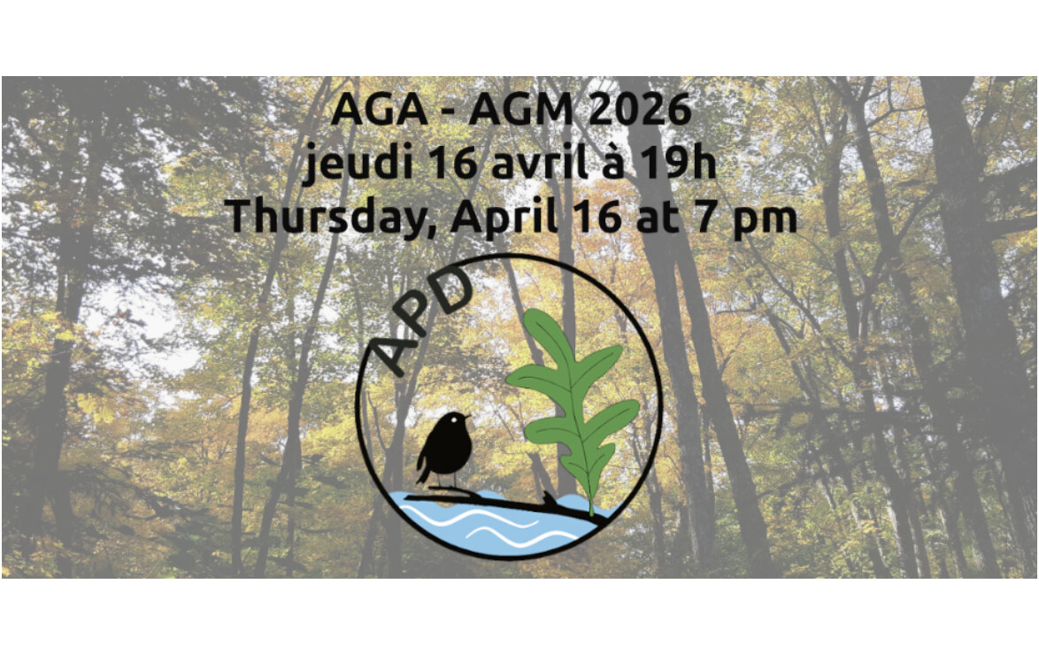 L’AGA de l’Alliance aura lieu le 16 avril à 19 h au Centre communautaire Belmont, 26 rue Belmont, Gatineau. La rencontre durera environ 1 heure et sera suivie d’un vins et fromages. En plus des rapports administratif et financier, il y aura une présentation sur notre document intitulé Priorités vers un plan directeur du futur parc Deschênes.