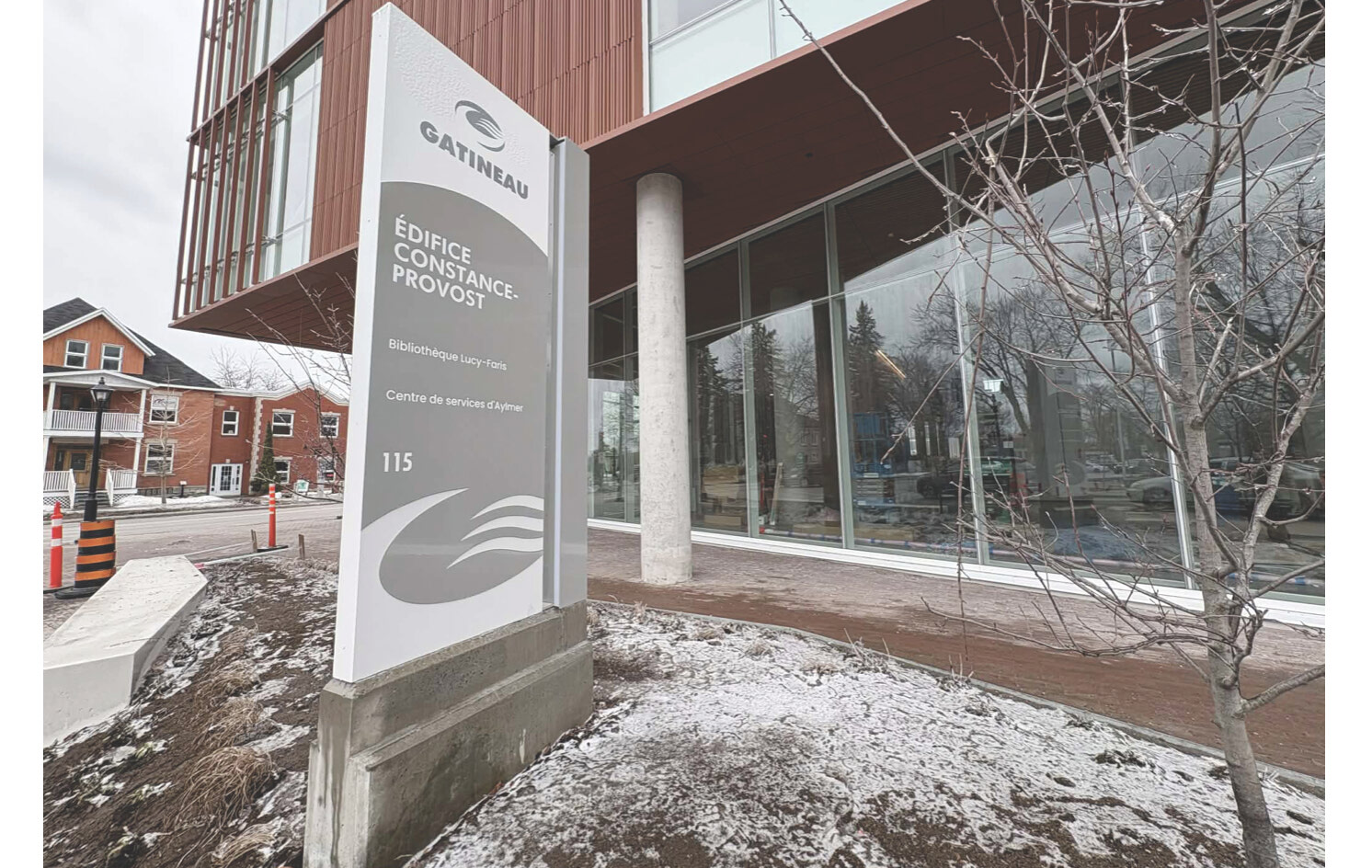Une enseigne sur socle arborant le logo de la Ville de Gatineau et un banc en béton ont été installés devant l’édifice Constance-Provost. Les travaux d’aménagement intérieur se poursuivent dans le bâtiment qui accueillera bientôt la bibliothèque Lucy-Faris et le centre de services d’Aylmer. Les équipes s’affairent à remplir les nouvelles étagères de livres, ainsi qu’à installer le mobilier et les équipements nécessaires. L’ouverture officielle aura lieu le 25 avril, comme annoncé par la conseillère Isabelle N. Miron, présidente de la Commission des arts, de la culture, des lettres et du patrimoine de la Ville de Gatineau.