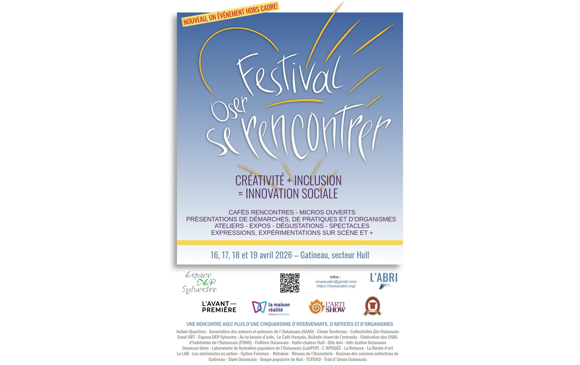 Pour de plus amples informations sur le festival ou pour y participer : https://reseauabri.org/festival-oser-se-rencontrer/