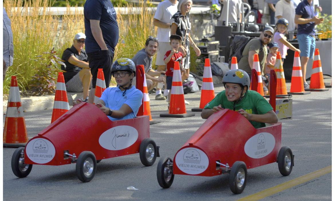 Young people aged 7 to 17 were able to enjoy the cars provided by the Corporation du Vieux Aylmer, which organized the race. Given the short time between the announcement of the event and the race, the corporation decided to provide the cars for the occasion. Twenty volunteers assembled them from kits purchased in Montreal.