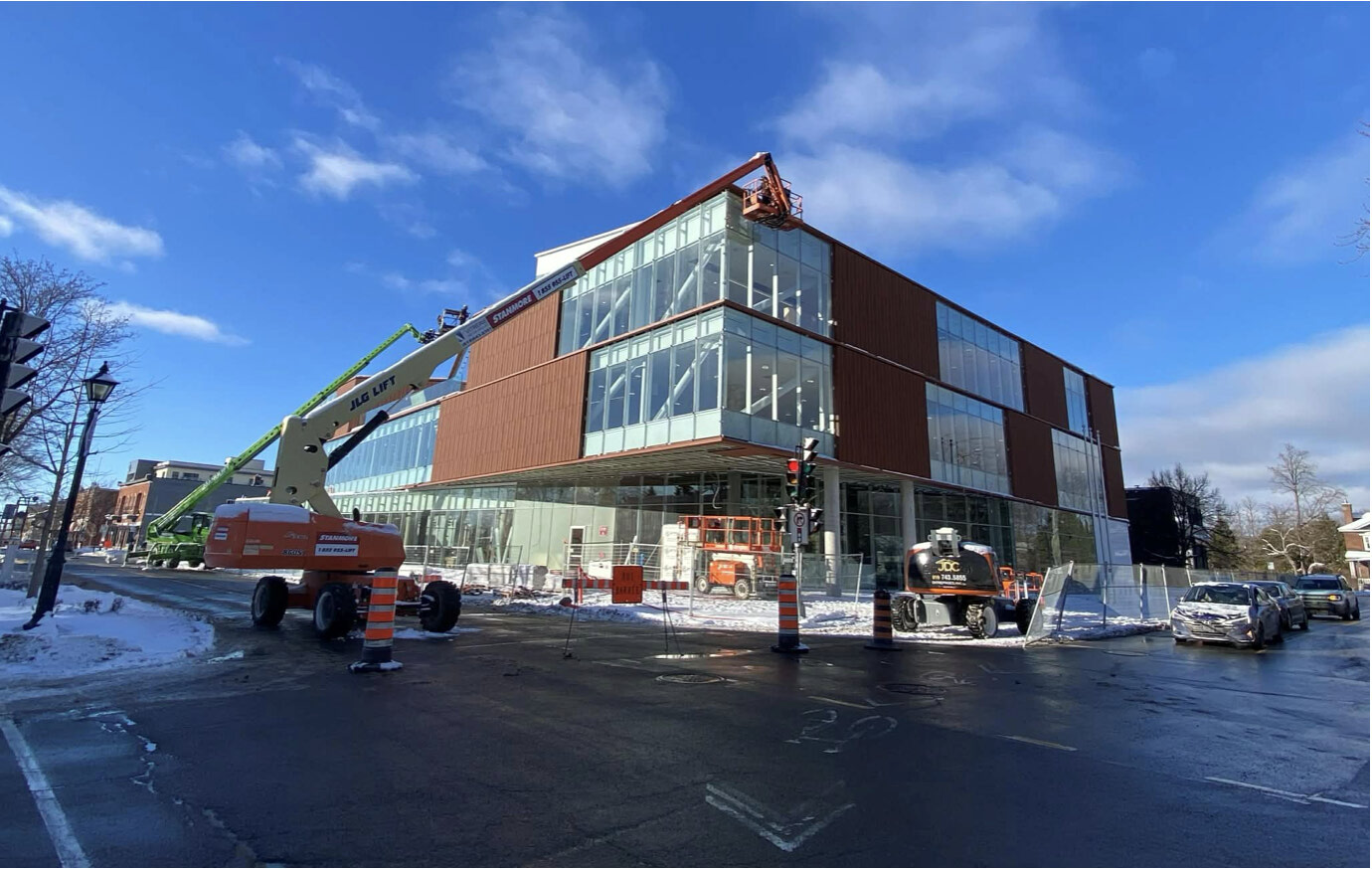 The long-awaited Constance-Provost building, future home for Gatineau city services for Aylmer as well as the Lucy-Faris Library, is nearing completion. According to Gatineau, the construction is progressing well. Workers can be seen working on the building on December 12, despite freezing temperatures.