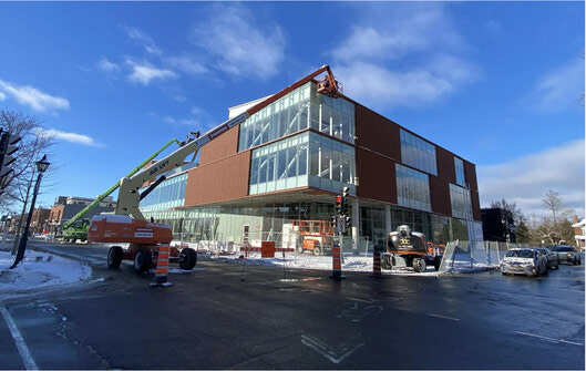 L’édifice Constance-Provost, qui abritera la bibliothèque Lucy-Faris et le centre de services d’Aylmer, est sur le point d’être achevé. Selon la Ville de Gatineau, les travaux progressent conformément à l’échéancier établi. Le 12 décembre dernier, on pouvait apercevoir des ouvriers à l’œuvre sur le chantier malgré le froid glacial.