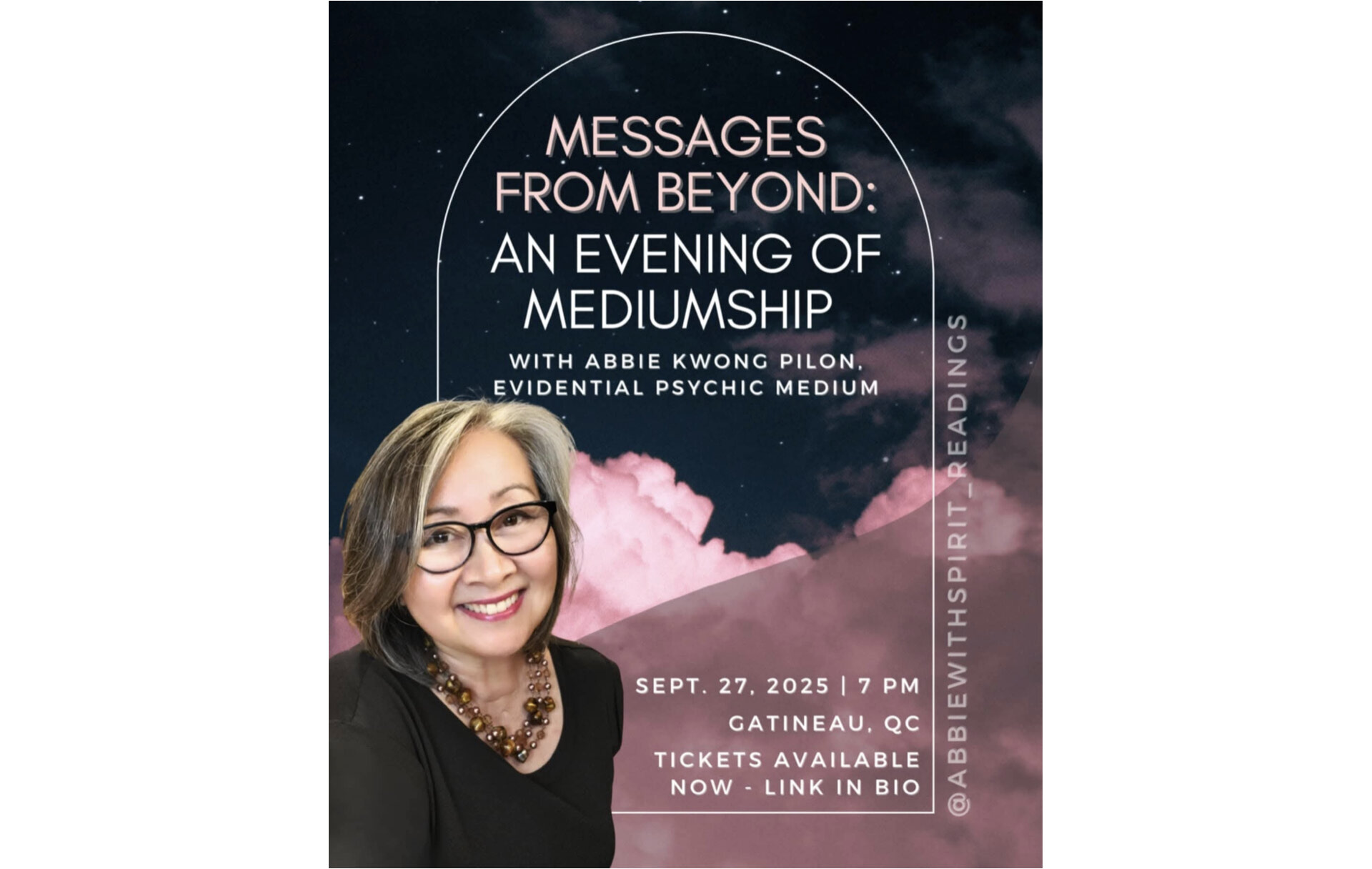 To raise funds to support families in need through the Aylmer Food Centre, clairvoyant and medium Abbie Kwong Pilon will be organizing a mediumship reading event at the Knights of Columbus Hall located at 78 Rue Principale, on Saturday, September 27, from 7 pm to 8:30 pm. Doors will open at 6:30 pm. Tickets are $20, and all proceeds will be donated to the Aylmer Food Centre. Please note that the activity is for ages 16 and up.