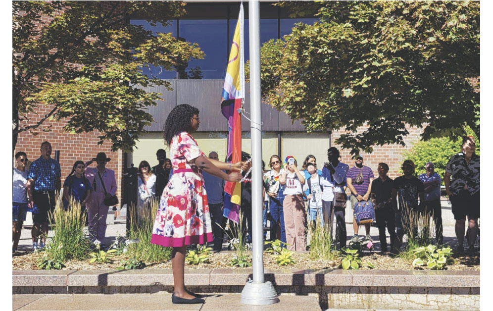 Gatineau launched Pride Week on August 15 with speeches in front of City Hall, the raising of the progressive Pride flag, and the start of a week-long program of cultural, educational, and community events celebrating diversity and defending 2SLGBTQIA+ rights. Photo: Tashi Farmilo